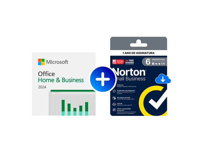 O combo Microsoft Office Home and Business 2024 ESD + Norton Small Business 1 ano é a escolha ideal para quem busca produtividade e segurança em um único pacote. Voltado para profissionais, empreendedores e pequenas empresas, esse conjunto oferece as principais ferramentas de escritório da Microsoft aliadas a uma proteção digital completa da Norton.