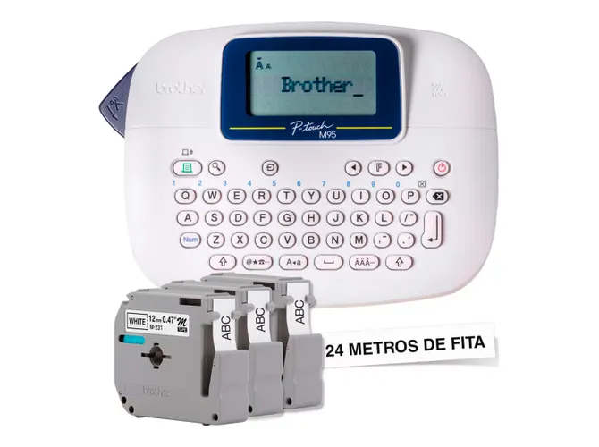 O Rotulador Eletrônico Brother PTM95WTBP é uma ferramenta prática e eficiente para organizar espaços e personalizar objetos com etiquetas claras e duráveis. Compacto e leve, ele é ideal para uso doméstico, em escritórios ou em ambientes educacionais, permitindo criar etiquetas de maneira rápida e com um acabamento profissional. O modelo PTM95WTBP acompanha 3 fitas na cor branca, proporcionando versatilidade para diferentes aplicações, como identificação de pastas, caixas, cabos, utensílios e muito mais. Ele conta com um teclado QWERTY intuitivo, que facilita a digitação, e uma tela LCD que permite visualizar a configuração das etiquetas antes da impressão. Com diversas opções de fontes, estilos e molduras, o rotulador oferece flexibilidade para personalizar etiquetas conforme a necessidade. Ele também possui funções práticas, como repetição de impressão e economia de fita, garantindo um uso eficiente dos materiais. Funcionando com pilhas AAA, o rotulador é portátil e pode ser usado em qualquer lugar, sem necessidade de cabos ou tomadas. Sua construção robusta e interface fácil de usar o tornam acessível para usuários de todas as idades.